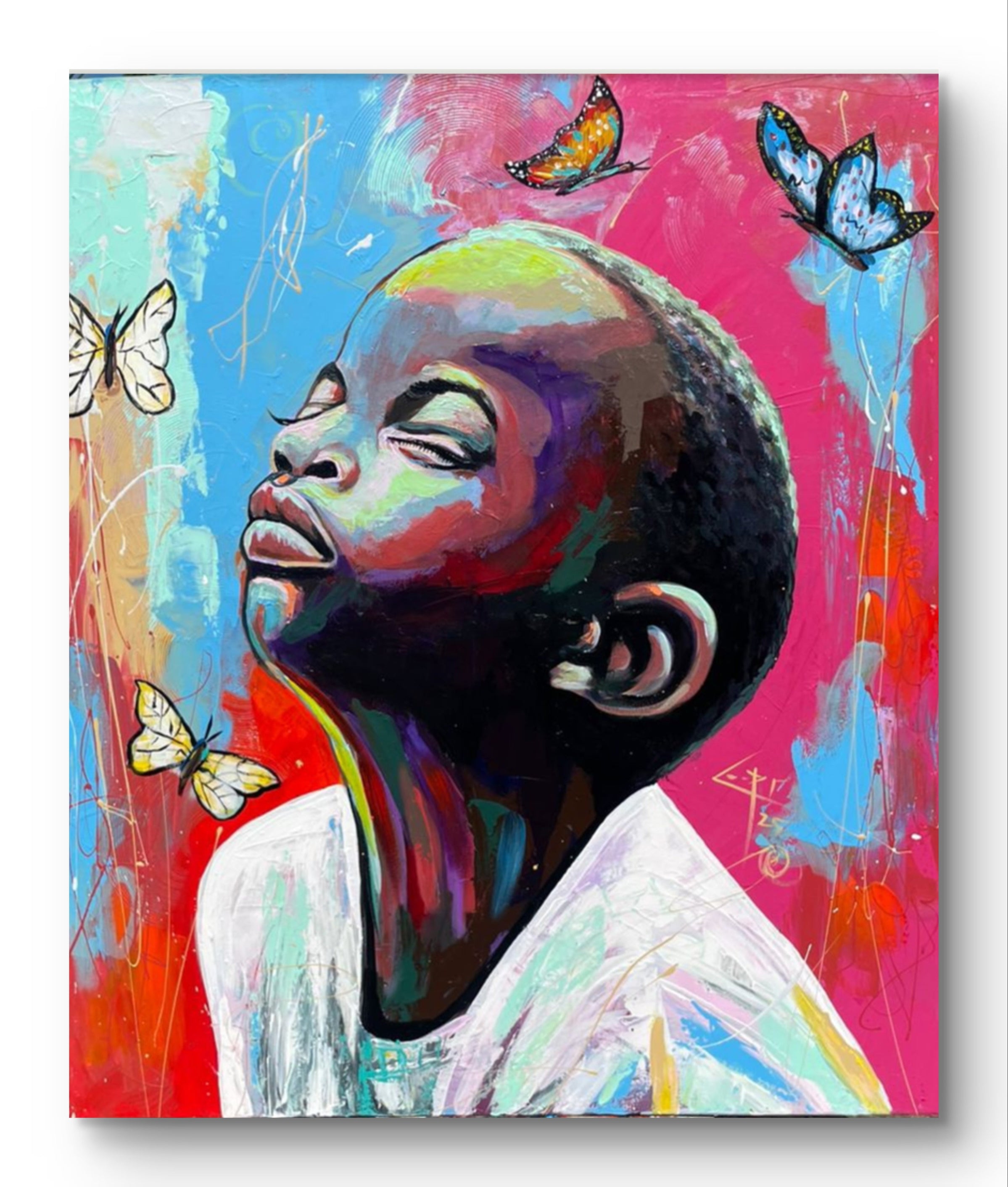 Hopeful Horizons captures the essence of innocence and optimism through the portrayal of a young boy in meditation. His upward gaze symbolizes a deep connection to his dreams and aspirations, reflecting a desire for a brighter future for himself and his family. The vibrant colors and gentle brushstrokes evoke a sense of tranquility and hope, inviting viewers to share in the boy's peaceful contemplation and envision the possibilities that lie ahead.
