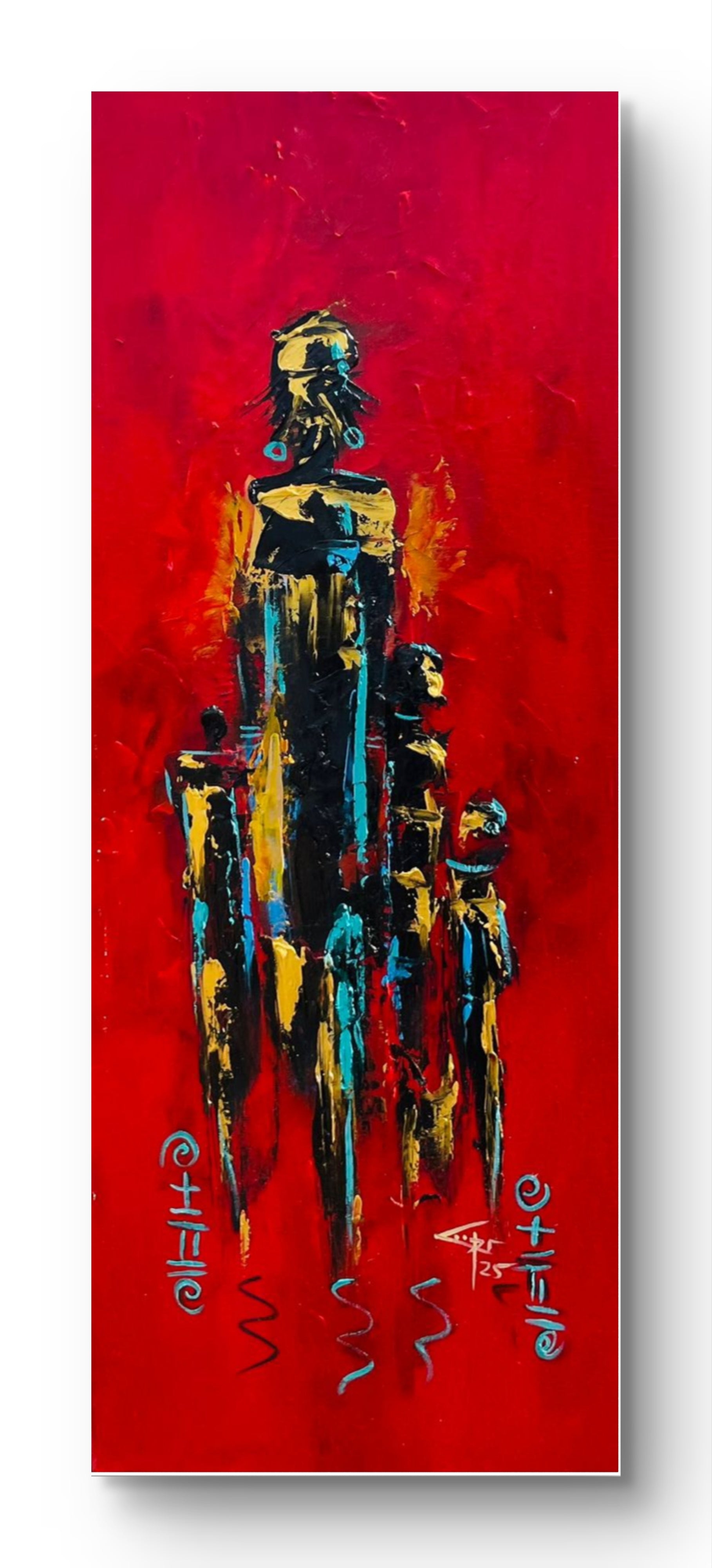 This painting captures the spirit of a Liberian single mother striving for a brighter future for her children against a striking red backdrop. The vibrant colors symbolize her passion and determination, while abstract forms represent the challenges she faces on the bustling streets of Monrovia. The interplay of light and shadow conveys her unwavering commitment to provide for her family through hard work and sacrifice. This painting serves as a tribute to the strength and resilience of mothers everywhere, highlighting the hope that drives them to overcome obstacles in pursuit of their children's education and dreams.